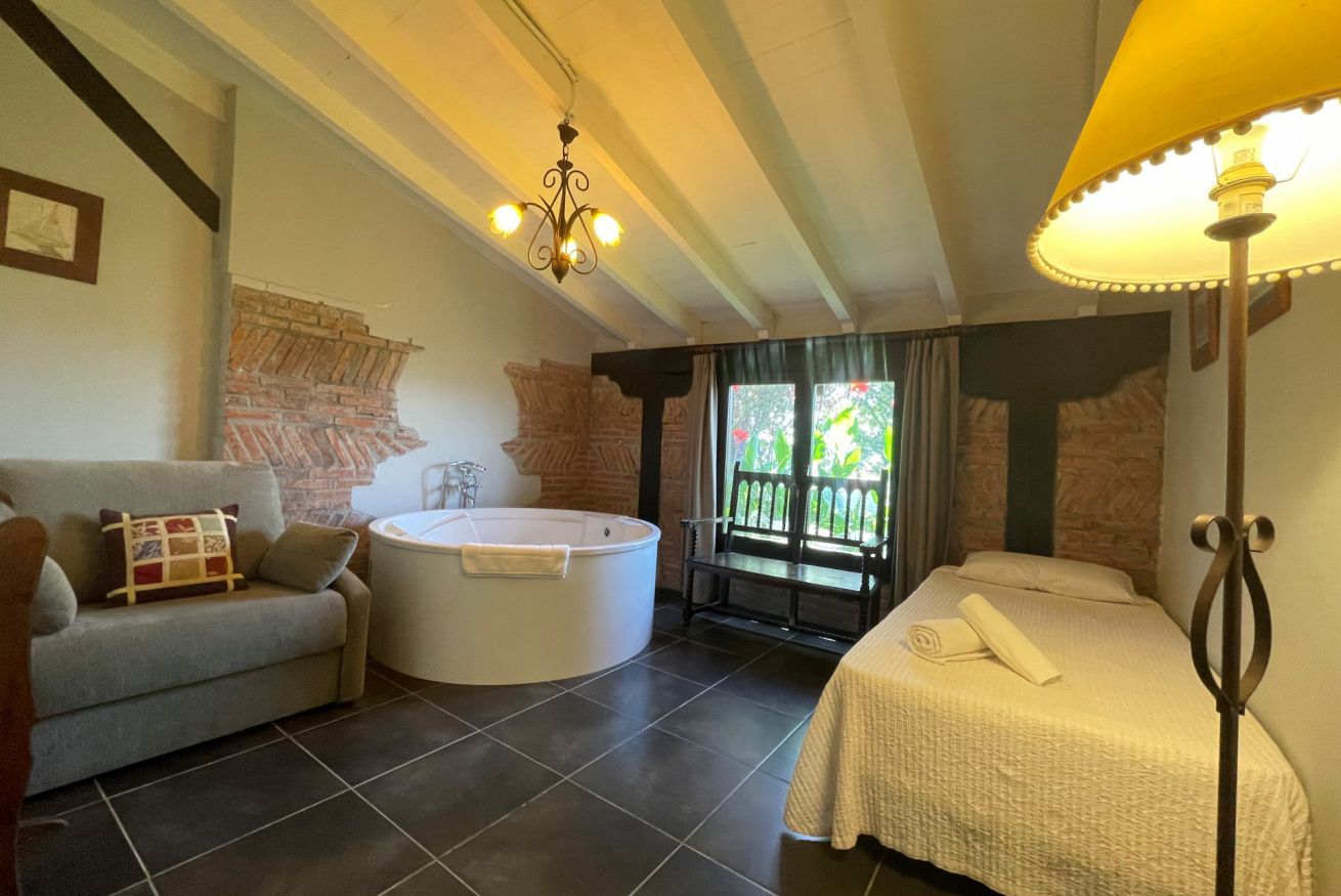 Habitación Rústica con Jacuzzi para 3 personas máximo. Dispone de Baño privado, Jacuzzi en la habitación y terraza.